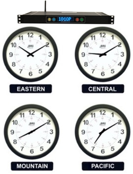 The Master Clock is programmed with each country’s, state’s or region’s time zone information, including any Daylight Saving Time (DST) rules that may exist for each location. This includes locations that have a 30 or 45 minute offset from Zulu/UTC. Leap seconds are also supported.