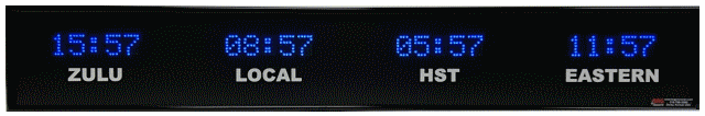 time zone clocks have 5 character dot matrix LED displays that alternate between