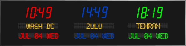 | 6673J | 3 Zone Clock with 4.0" blue bar segment LEDs for the Time and 1.2" red dot matrix LEDs for the date & zone labels | |