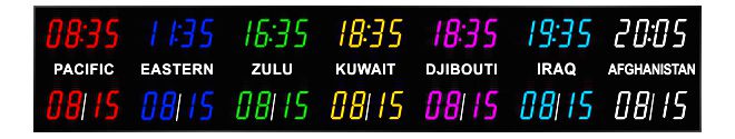 1.2" Dot Matrix LED - 7 Zone Alpha Time Zone Clocks