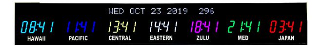 2.0" Dot Matrix LED - 7 Zone Alpha Time Zone Clocks